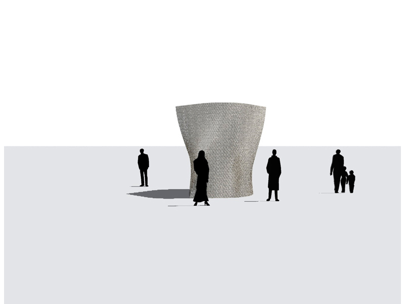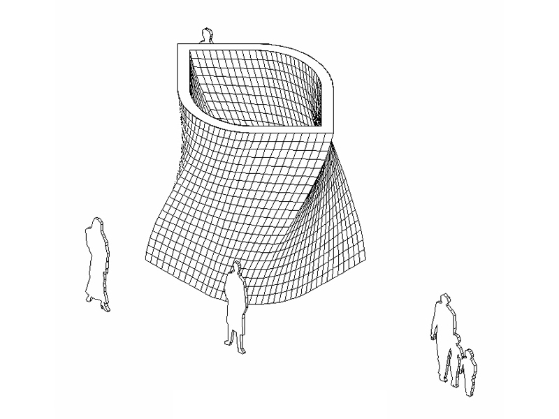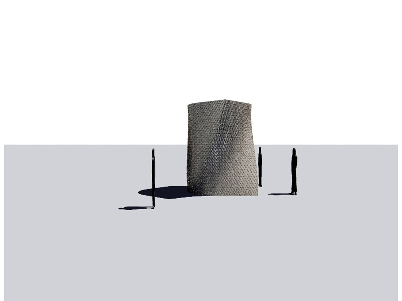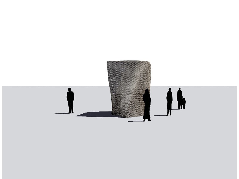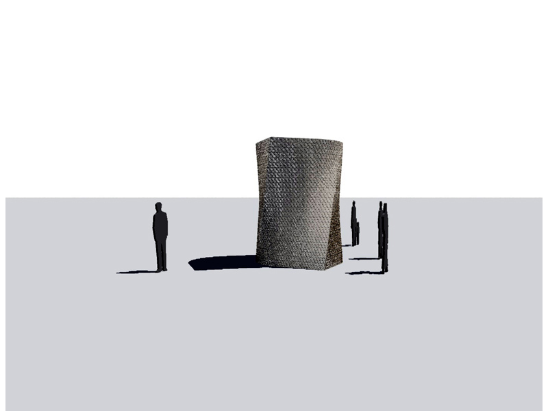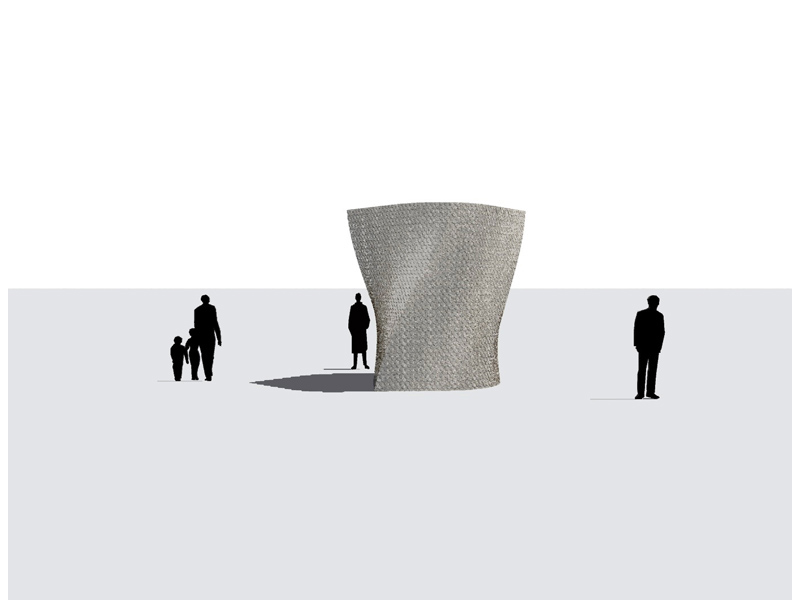 De uitblaasunit van de parkeergarage onder Nieuw Zaailand is verbijzonderd door twee rechte hoeken in de ronde pijp te maken en het boveneinde van de pijp een kwart slag te draaien. De pijp is betegeld met kleine spiegeltjes waardoor alle om het plein gelegen gevels verdraaid worden weerspiegeld in het oppervlak, waardoor je “om de pijp heen” kunt kijken.