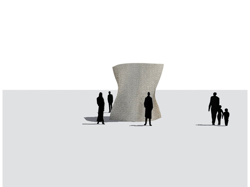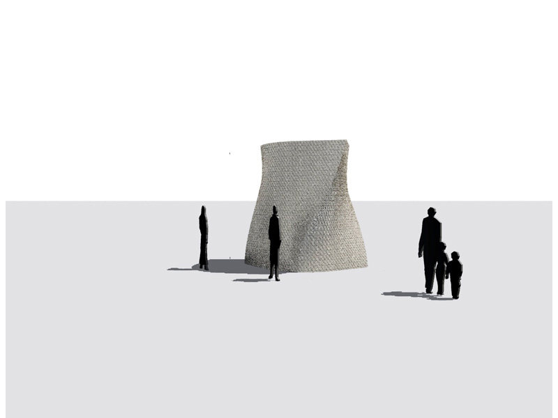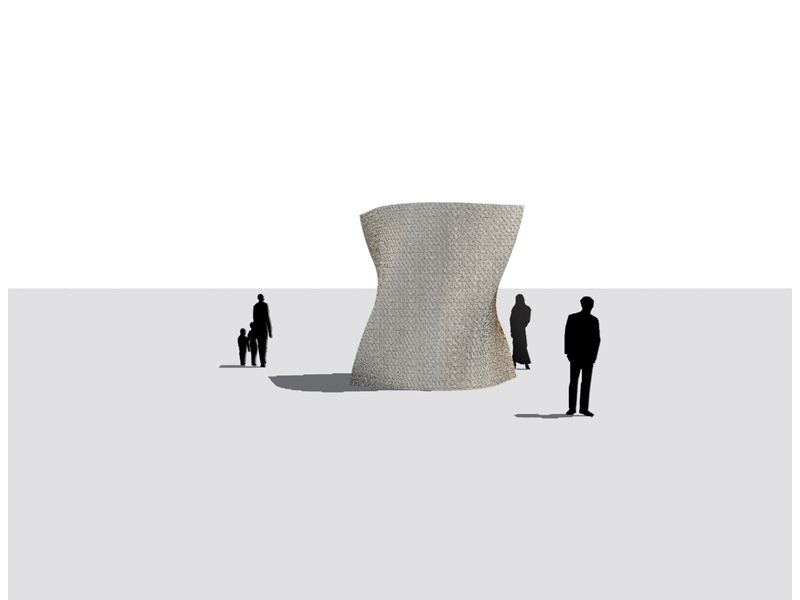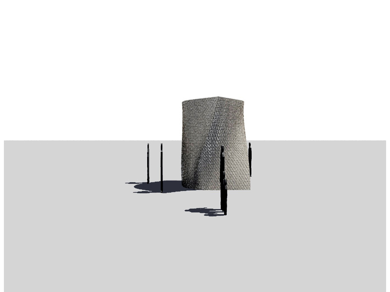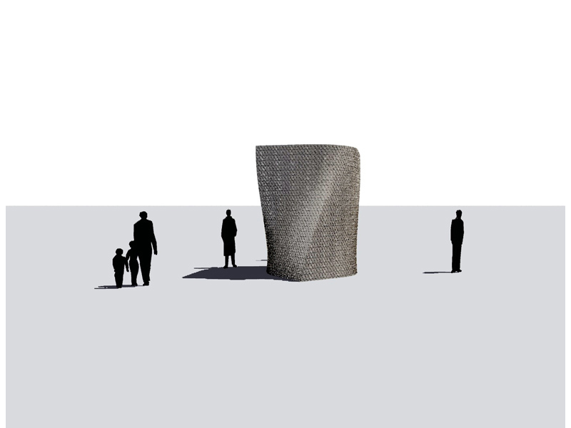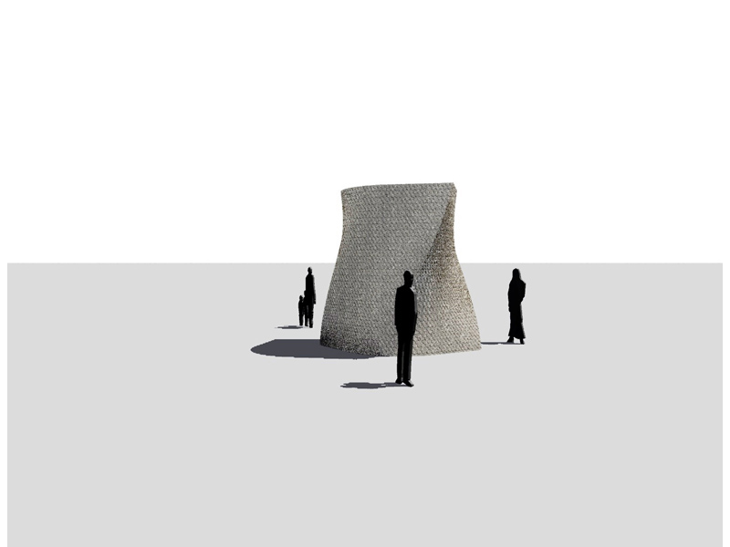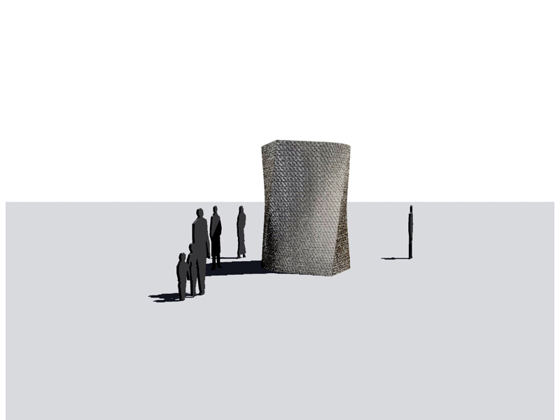 De uitblaasunit van de parkeergarage onder Nieuw Zaailand is verbijzonderd door twee rechte hoeken in de ronde pijp te maken en het boveneinde van de pijp een kwart slag te draaien. De pijp is betegeld met kleine spiegeltjes waardoor alle om het plein gelegen gevels verdraaid worden weerspiegeld in het oppervlak, waardoor je “om de pijp heen” kunt kijken.