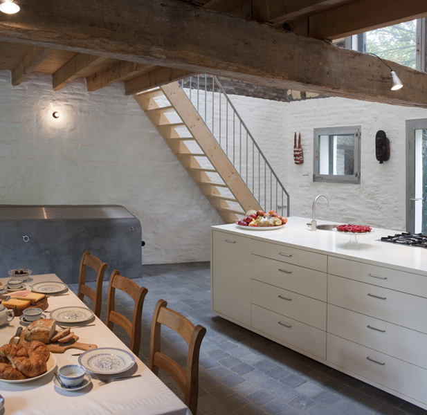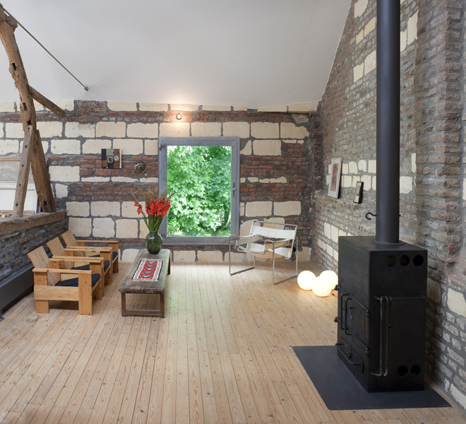Deze voormalige boerderij bestaat uit drie delen: het oude woonhuis, de koeienstal en de varkensstal. In elk deel is een nieuw woonhuis ontworpen waarbij de karakteristieke elementen van dat deel zijn behouden. Zo zijn de drinkbakken in de koeienstal omgebouwd tot keukenkasten en gecombineerd met een strak en wit kookeiland, zodat er een nieuw soort "boerenkeuken" is ontstaan waar de sfeer van de oorspronkelijke stal nog goed voelbaar is. De verbouwing van dit complex wordt gefaseerd uitgevoerd. Op dit moment wordt er gewerkt aan de plannen voor het derde woonhuis in de voormalige varkensstal, waarvoor we eind 2011 de Monumenten & omgevingsvergunning hebben ontvangen.