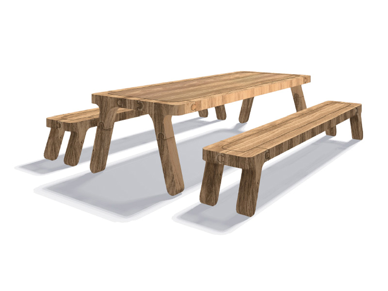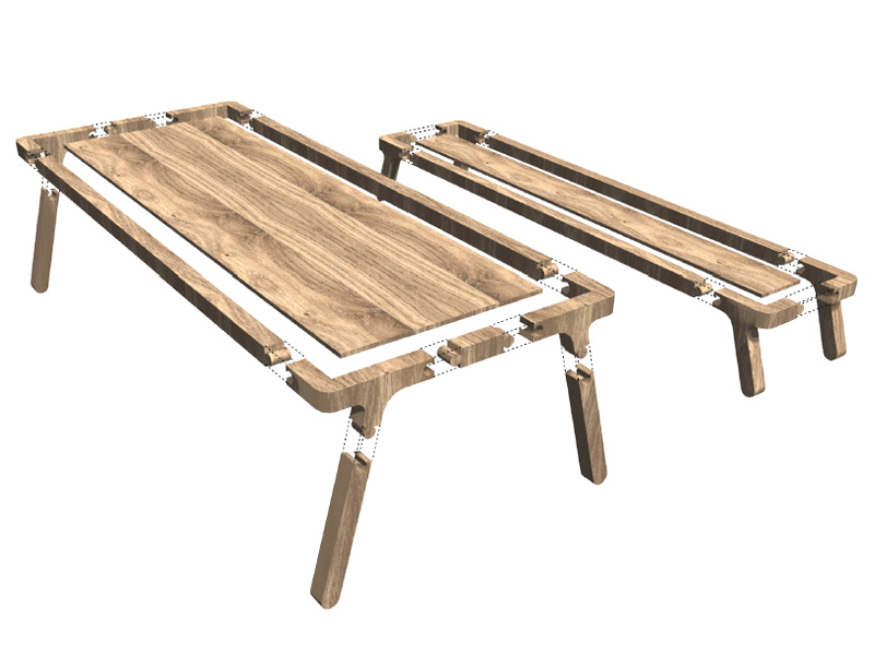 Met gebruikmaking van CADCAM gestuurde freestechnieken wordt deze tafel opgebouwd uit drie-dimensionale puzzelstukken die "koud" in elkaar geschoven kunnen worden.